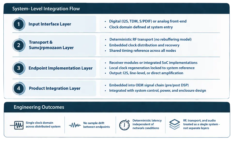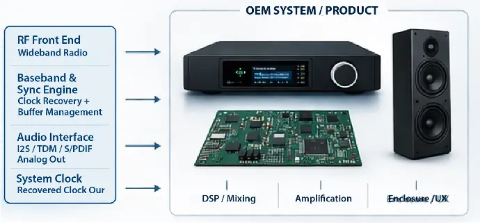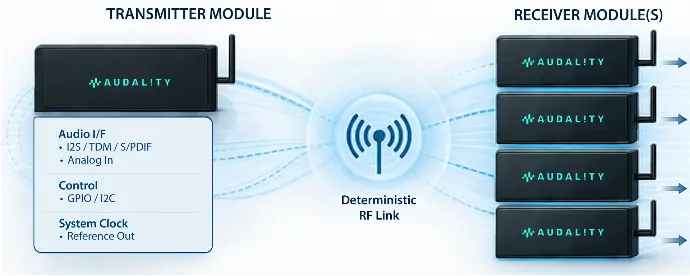 - RF architecture optimized for continuous audio transport